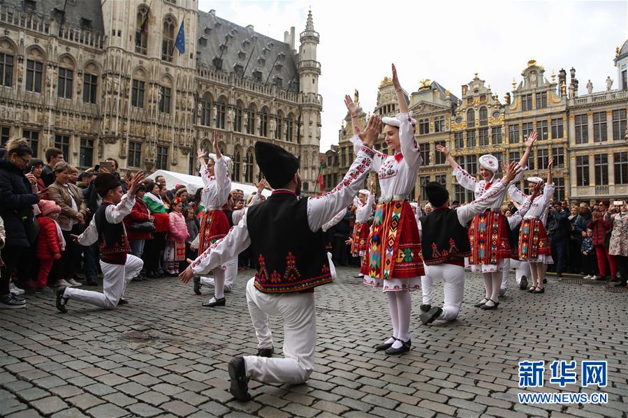4月28日,在比利時(shí)布魯塞爾大廣場(chǎng),演員表演保加利亞的民族舞蹈。 當(dāng)日,來(lái)自歐洲多個(gè)國(guó)家的表演者在比利時(shí)布魯塞爾大廣場(chǎng)載歌載舞,慶祝為期五天的2019年巴爾干文化藝術(shù)節(jié)圓滿落幕。該文化藝術(shù)節(jié)旨在用音樂(lè)、舞蹈、文學(xué)、街頭藝術(shù)等方式向公眾展現(xiàn)東南歐巴爾干半島地區(qū)的民族文化風(fēng)情。 新華社記者鄭煥松攝