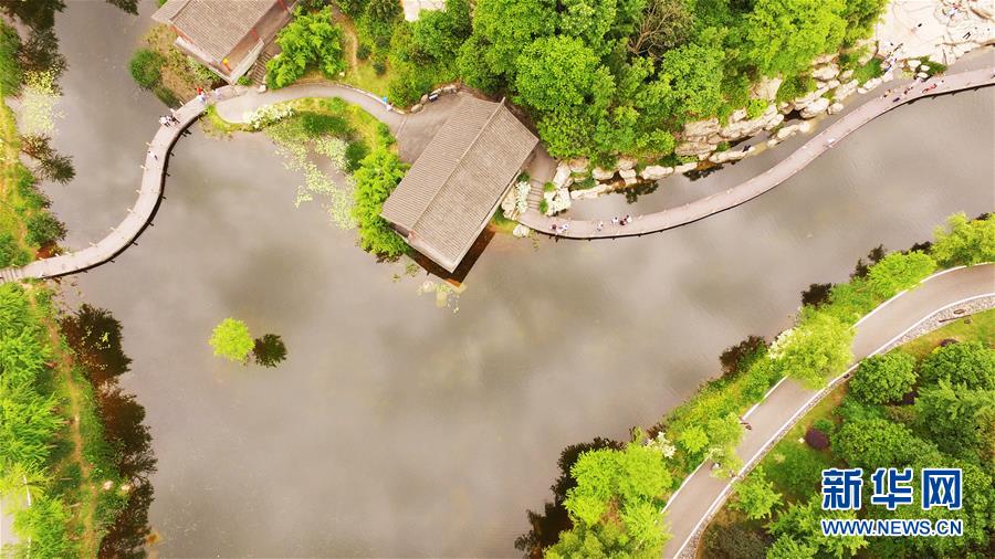 這是5月1日無(wú)人機(jī)拍攝的重慶璧山觀音塘濕地公園景象。