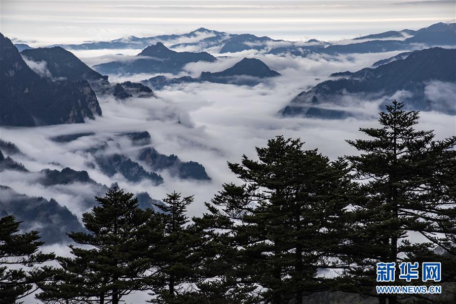 神農(nóng)架國家公園陰峪河大峽谷云海(2018年10月20日攝)。 新華社記者 杜華舉 攝