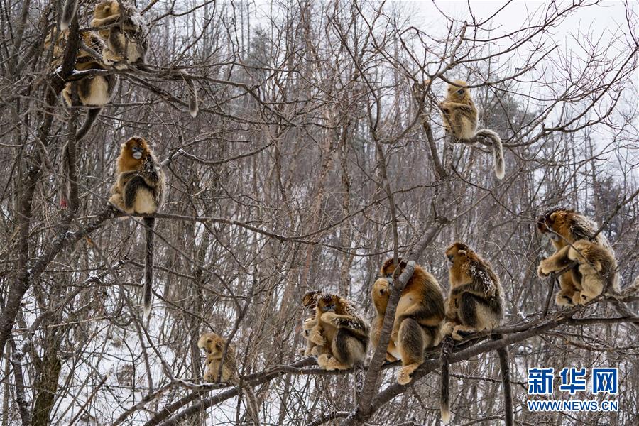 在神農(nóng)架國(guó)家公園大龍?zhí)杜臄z的金絲猴(2018年1月25日攝)。 新華社記者 杜華舉 攝