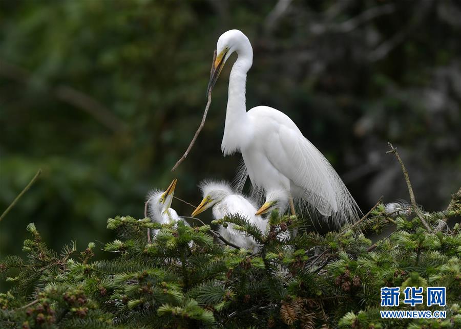 在江西省南昌市新建區(qū)象山森林公園內(nèi),白鷺和自己的雛鳥在一起(5月21日攝)。 近日,在江西省南昌市新建區(qū)象山森林公園內(nèi),已安家筑巢的大批鷺鳥陸續(xù)孵化出了后代。象山森林公園有著“鷺鳥王國”的美譽(yù),生態(tài)環(huán)境良好,每年都會吸引白鷺、蒼鷺、夜鷺等種類的鷺鳥飛抵棲息和繁衍后代。 新華社記者 彭昭之 攝