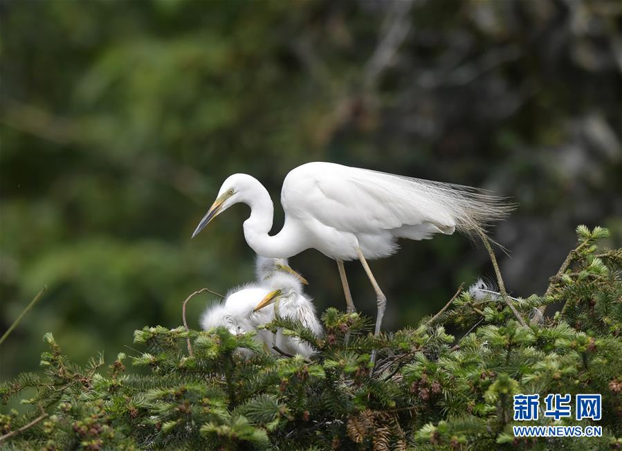 在江西省南昌市新建區(qū)象山森林公園內,白鷺和自己的雛鳥在一起(5月21日攝)。 近日,在江西省南昌市新建區(qū)象山森林公園內,已安家筑巢的大批鷺鳥陸續(xù)孵化出了后代。象山森林公園有著“鷺鳥王國”的美譽,生態(tài)環(huán)境良好,每年都會吸引白鷺、蒼鷺、夜鷺等種類的鷺鳥飛抵棲息和繁衍后代。 新華社記者 彭昭之 攝