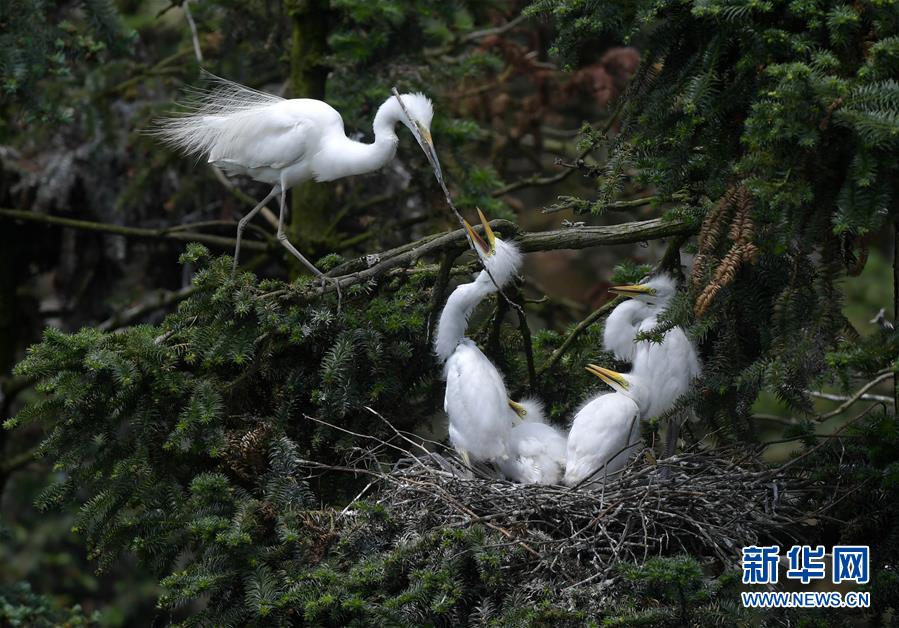 在江西省南昌市新建區(qū)象山森林公園內(nèi),白鷺和自己的雛鳥在一起(5月21日攝)。 近日,在江西省南昌市新建區(qū)象山森林公園內(nèi),已安家筑巢的大批鷺鳥陸續(xù)孵化出了后代。象山森林公園有著“鷺鳥王國(guó)”的美譽(yù),生態(tài)環(huán)境良好,每年都會(huì)吸引白鷺、蒼鷺、夜鷺等種類的鷺鳥飛抵棲息和繁衍后代。 新華社記者 彭昭之 攝