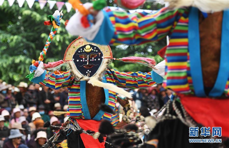 5月18日,藏戲藝人在拉薩市宗角祿康公園表演。 當(dāng)日,藏戲演出季活動(dòng)在西藏拉薩啟幕。即日起至7月底的每個(gè)星期六,民間藏戲藝人將在拉薩宗角祿康公園進(jìn)行公益表演。 新華社記者 普布扎西 攝