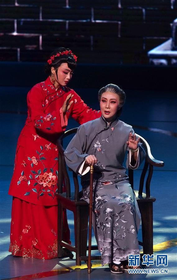 6月2日,蘇州市蘇劇傳習(xí)保護中心演員在第十二屆中國藝術(shù)節(jié)閉幕式上匯報演出獲得文華大獎的蘇劇《國鼎魂》選段。 新華社記者 任瓏 攝
