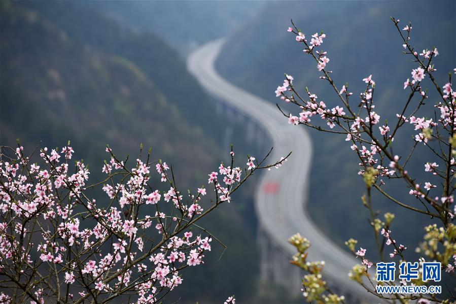 貴州思劍高速公路劍河縣岑松鎮(zhèn)段的春季景觀(3月23日攝)。陽(yáng)春時(shí)節(jié),貴州思(南)劍(河)高速公路劍河縣岑松鎮(zhèn)附近的桃花和梨花陸續(xù)開放。 新華社記者楊文斌攝