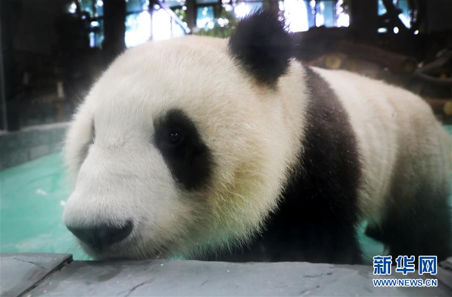 6月18日,大熊貓“和風(fēng)”湊到展館玻璃幕墻邊向外張望。 當日,來自四川的大熊貓兄弟“和風(fēng)”與“星光”飛抵上海,正式開始了在上海動物園為期三年的生活。為迎接這對“風(fēng)光兄弟”,上海動物園將原有的大熊貓館擴建并裝修一新,空調(diào)、水池、游樂場以及竹葉儲存間等配置齊全。 新華社記者 方喆 攝