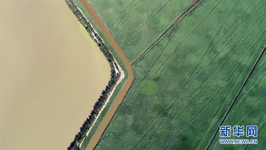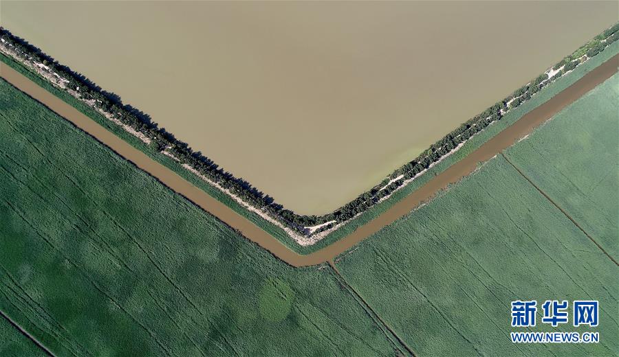 這是天津市寧河區(qū)七里海濕地內蘆葦和水面形成的圖案(6月22日無人機拍攝)。