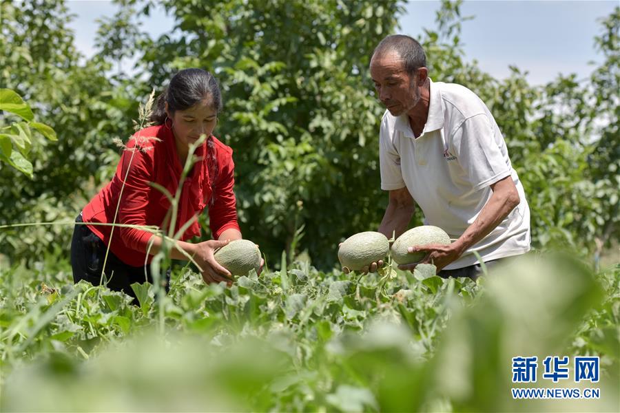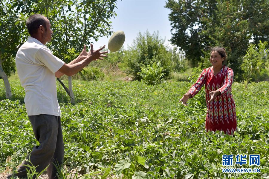 6月23日,新疆喀什地區(qū)巴楚縣的瓜農(nóng)在采摘留香瓜。新華社記者 丁磊 攝