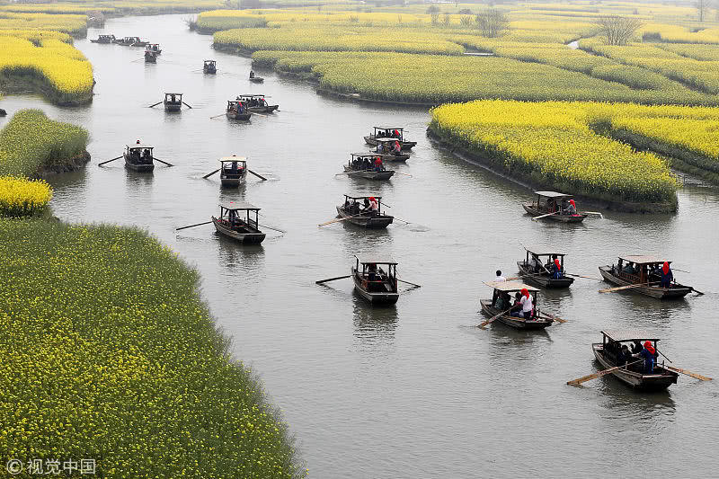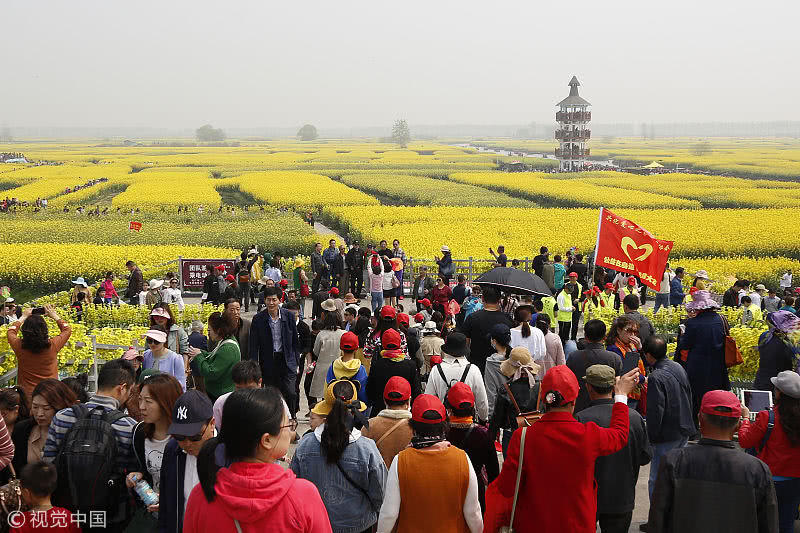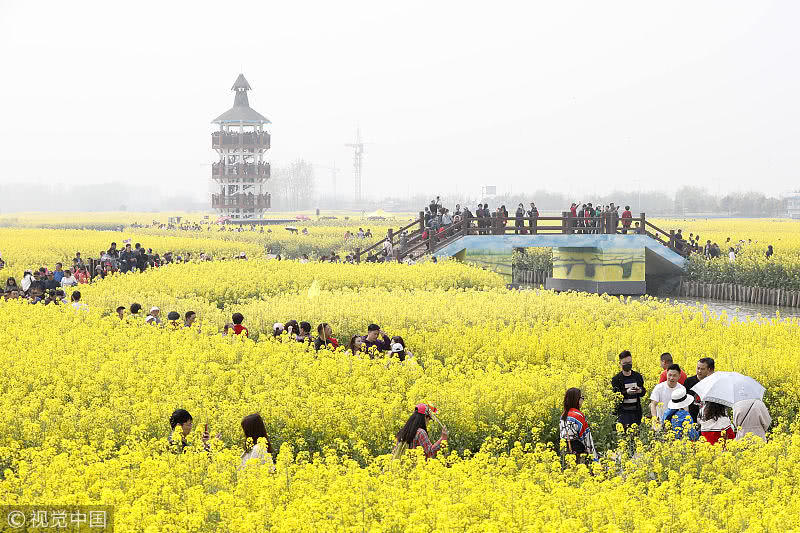 2019年4月7日,江蘇省興化市千垛菜花景區(qū)迎來旅游高峰期,數(shù)萬游客前來欣賞盛開的油菜花,樂享假日好時光。