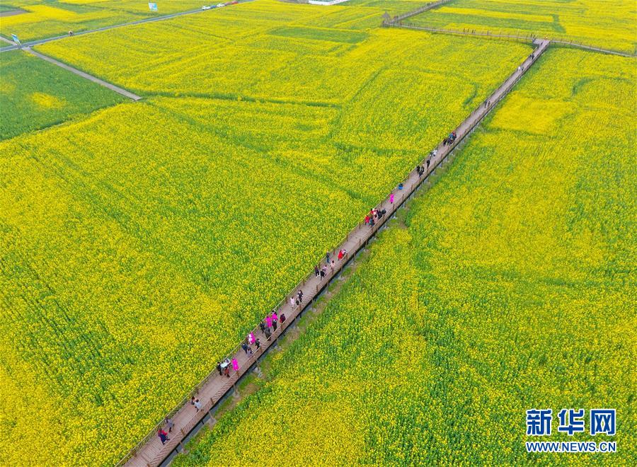 初春時節(jié),四川廣漢市西高鎮(zhèn)的油菜花盛開。金黃的油菜花與民居、道路等形成一幅幅鄉(xiāng)村畫卷,吸引游人踏青賞景。