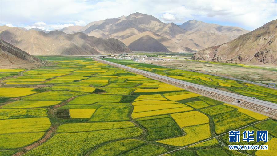7月2日在拉薩市堆龍德慶區(qū)德慶鄉(xiāng)拍攝的油菜花田(無人機拍攝)。 近日,西藏各地的油菜花盛開,呈現(xiàn)出生機勃勃的夏日美景。 新華社記者 普布扎西 攝