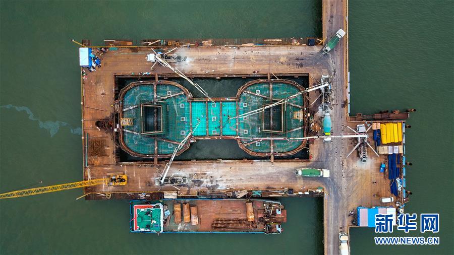 這是7月6日無人機(jī)拍攝的湛江調(diào)順跨海大橋東岸主塔墩承臺建設(shè)現(xiàn)場。 新華社記者 劉大偉 攝