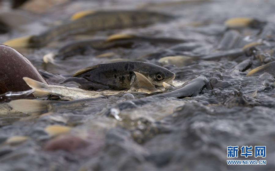 7月6日,在青海省剛察縣沙柳河里,湟魚向上洄游。 新華社記者 費茂華攝