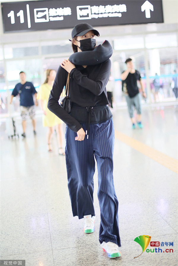關(guān)曉彤淡定抱臂行走 脖子上掛U型枕毫無(wú)偶像包袱