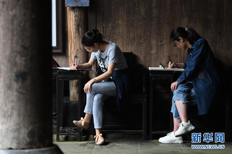 4月24日,繪畫(huà)愛(ài)好者在西遞風(fēng)景區(qū)寫(xiě)生。近日,隨著氣溫升高,位于安徽省黟縣的古村落西遞和宏村春意盎然,景色如畫(huà)。大批繪畫(huà)愛(ài)好者前來(lái)寫(xiě)生,用畫(huà)筆描繪古村春色。 新華社記者 張端 攝