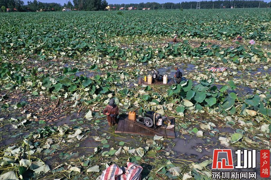 藕農(nóng)們抓緊采藕、清洗、包裝、運輸,以供應(yīng)市場。