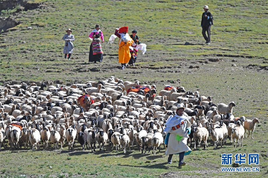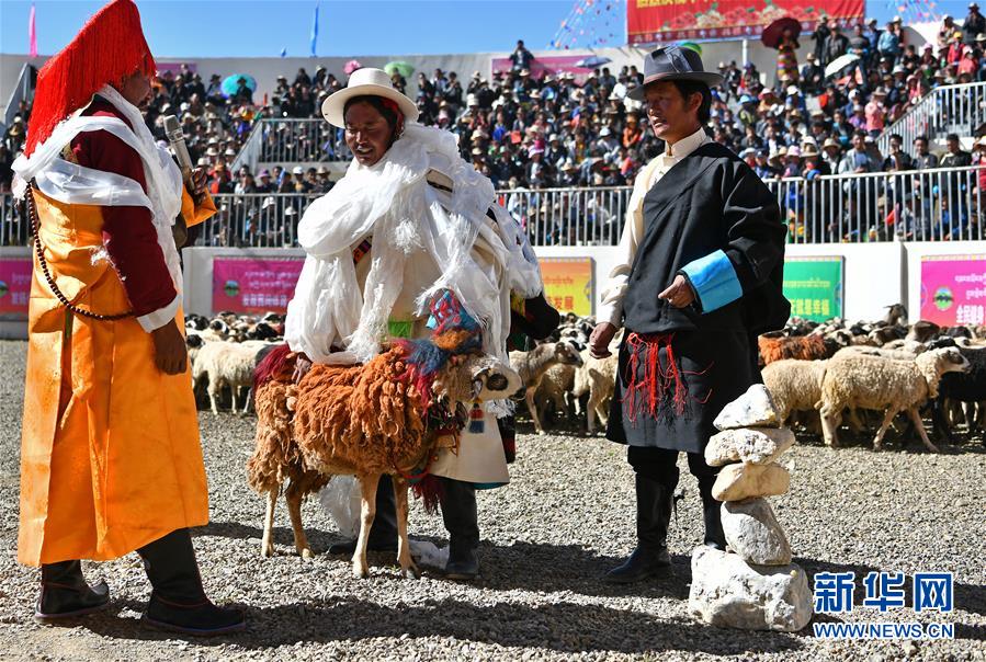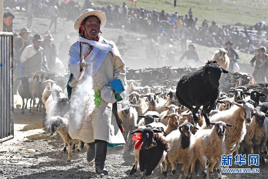 9月9日,牧民在贊頌頭羊。 新華社發(fā)(孫非攝)