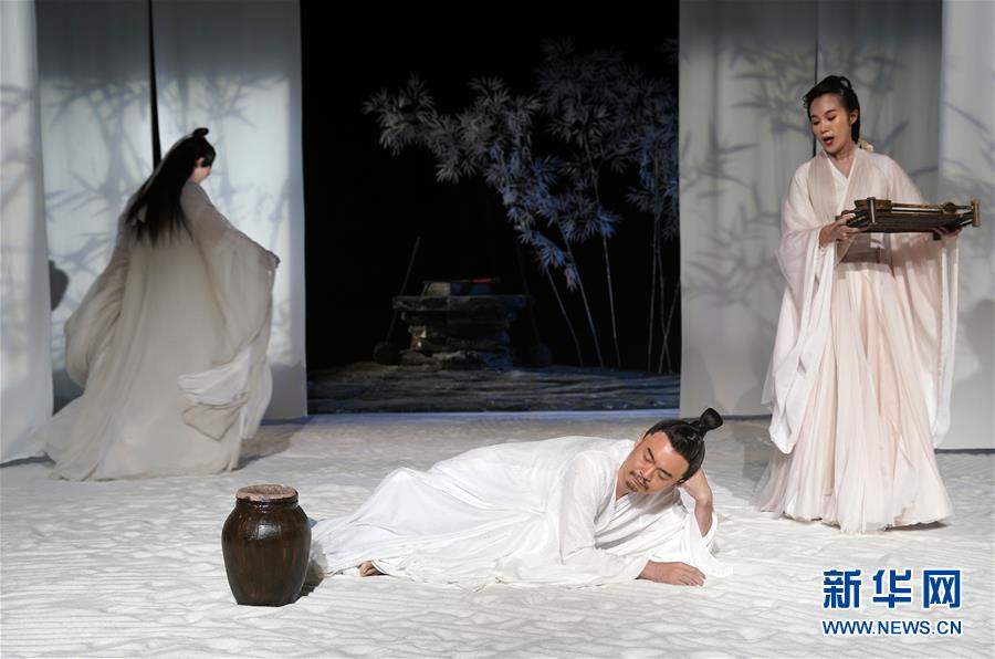 9月16日,演員在話劇《廣陵絕》中表演。 當日,話劇《廣陵絕》在北京人藝實驗劇場上演。 新華社記者 金良快 攝