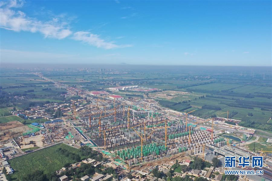 8月27日無人機(jī)拍攝的建設(shè)中的雄安站。