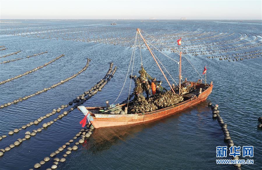 遼寧長(zhǎng)海漁民打撈牡蠣 場(chǎng)面壯觀!