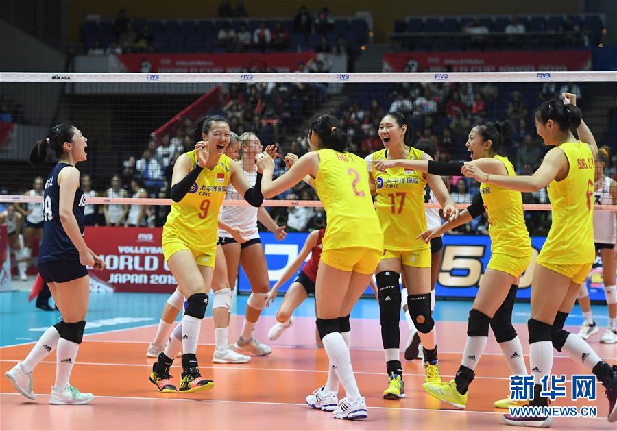 9月23日,中國隊(duì)球員在比賽中慶祝得分。當(dāng)日,在日本札幌舉行的2019年女排世界杯賽第二階段A組循環(huán)賽中,中國隊(duì)以3比0戰(zhàn)勝美國隊(duì)。新華社記者賀燦鈴攝