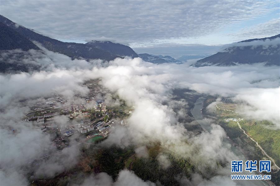 這是云海籠罩的西藏墨脫縣(4月9日無(wú)人機(jī)拍攝)。新華社記者李鑫攝