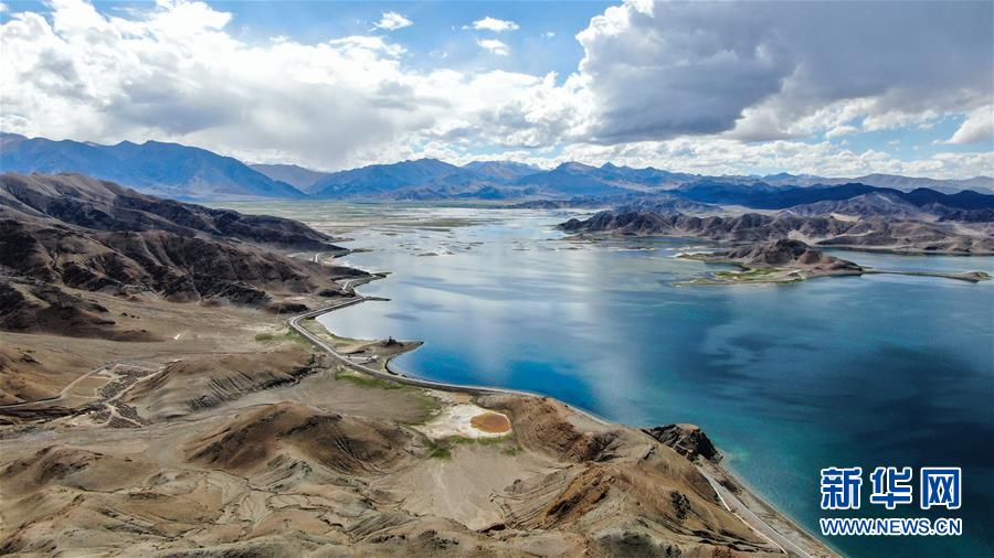普姆雍錯(cuò)湖緊挨著公路,是自駕游的理想目的地(9月19日無(wú)人機(jī)拍攝)。新華社記者晉美多吉攝