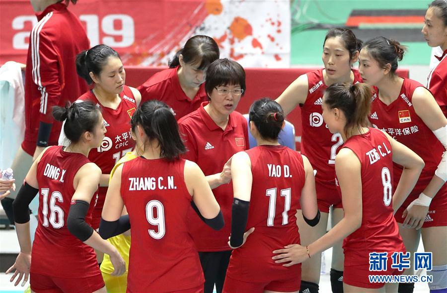 9月22日,中國隊主教練郎平(中)在比賽間隙指導(dǎo)球員。當(dāng)日,在日本札幌舉行的2019年女排世界杯賽第二階段A組循環(huán)賽比賽中,中國隊以3比2戰(zhàn)勝巴西隊。新華社記者杜瀟逸攝