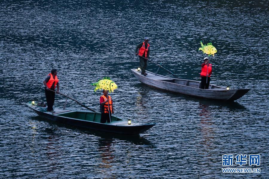 9月25日,在宋村鄉(xiāng)云源港的水面上,漁民劃著漁船,船頭點(diǎn)亮漁燈,構(gòu)成一幅“漁舟唱晚、萬(wàn)家燈火”的美麗圖景。 新華社記者 徐昱 攝