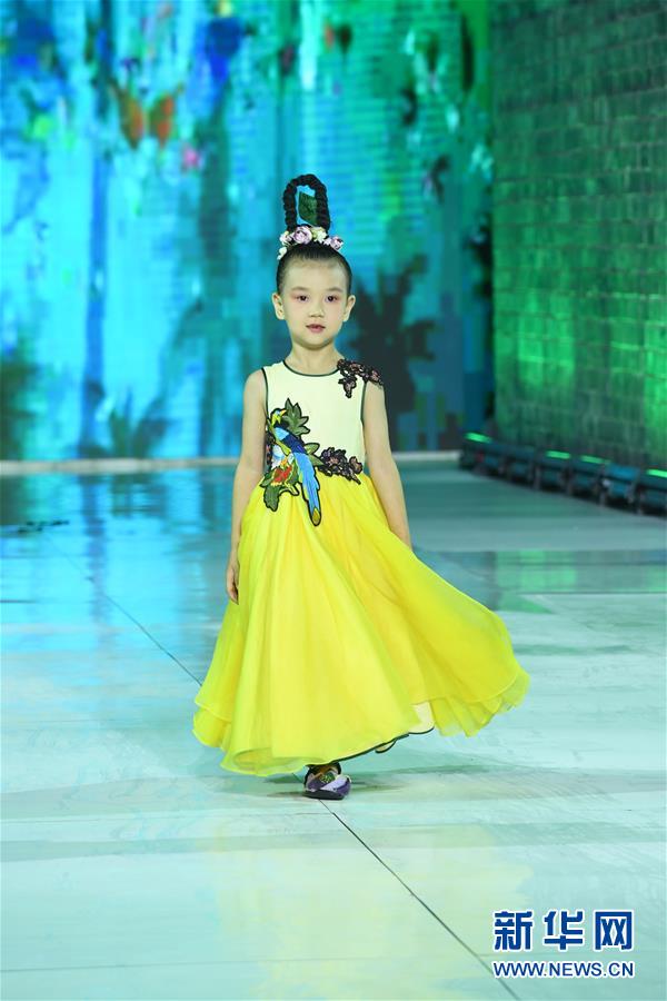 9月25日,小模特在榮昌夏布·張義超非遺時尚大秀上展示時裝設(shè)計師張義超的時裝作品。 新華社記者 唐奕 攝