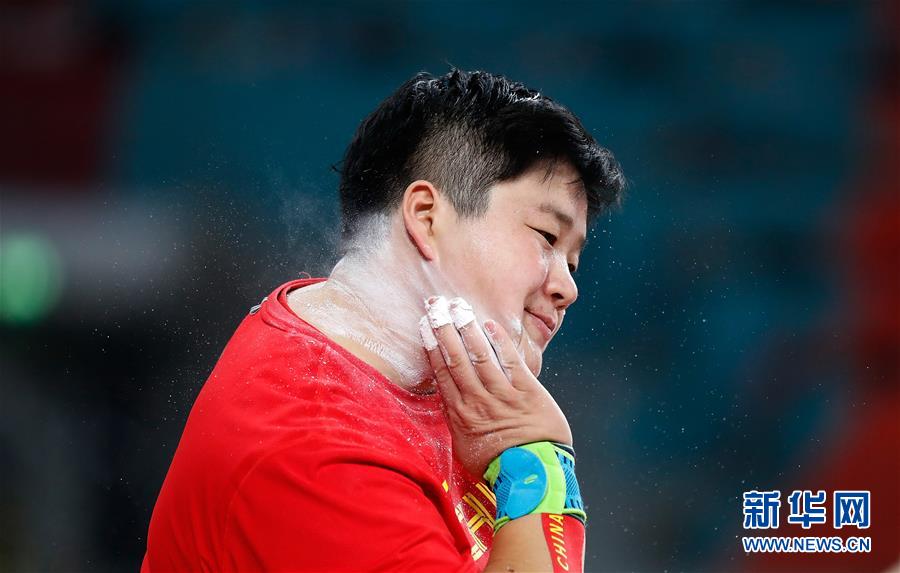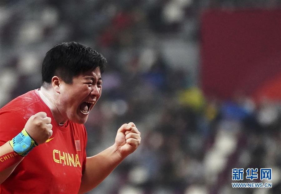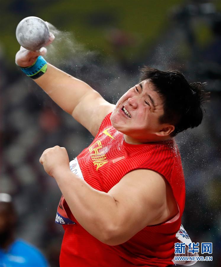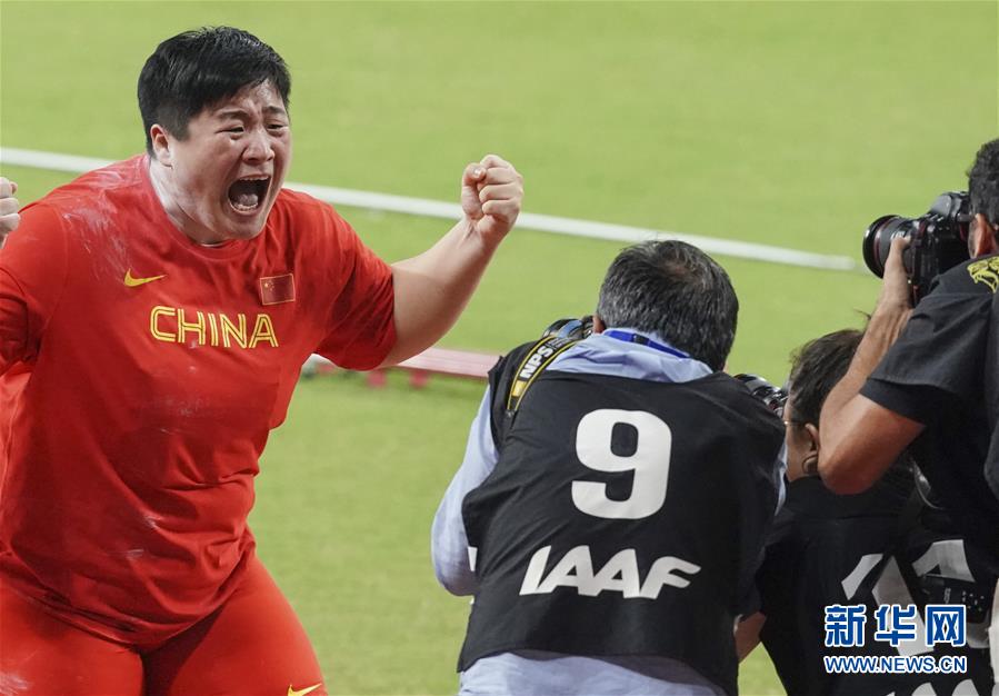 當日,在卡塔爾多哈舉行的2019國際田聯(lián)世界田徑錦標賽女子鉛球決賽中,衛(wèi)冕冠軍、中國選手鞏立姣以19米55的成績奪得冠軍。 新華社記者李鋼攝