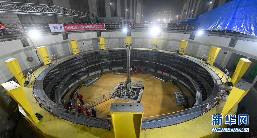 烏東德水電站左岸地下電站主廠房內的6號機組正在建設中(5月30日攝)。新華社記者陳曄華攝