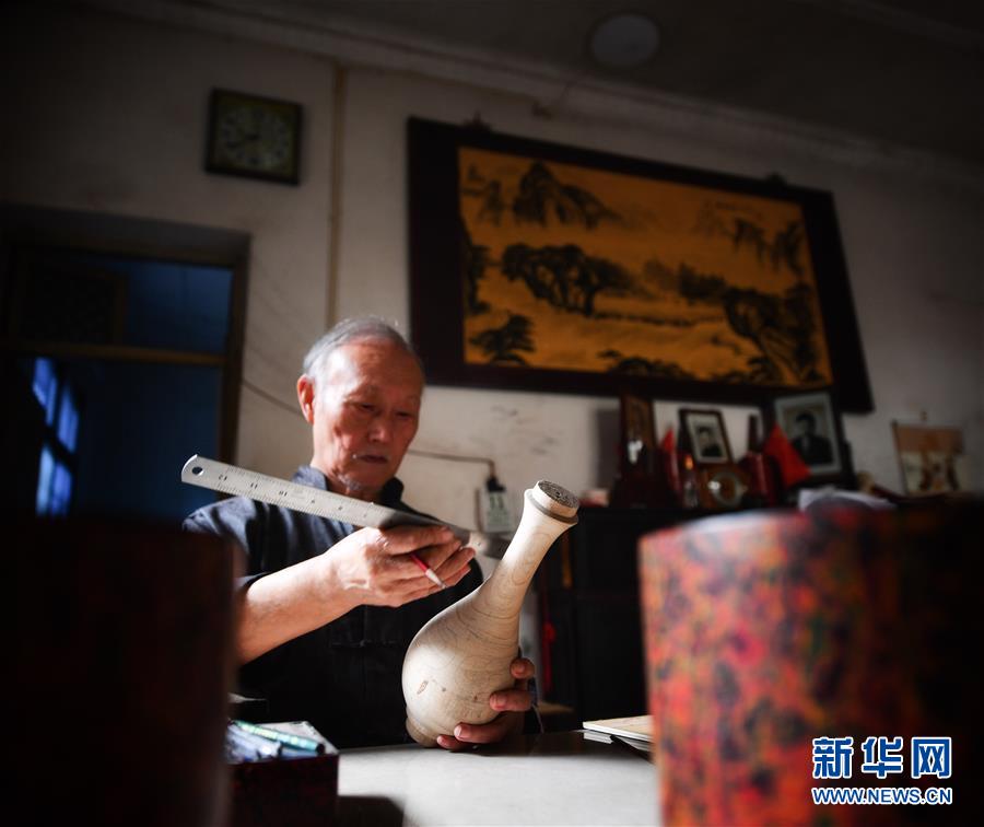 10月12日,丁國坤在家中設計一件脫胎漆器的模型。新華社記者胡晨歡攝