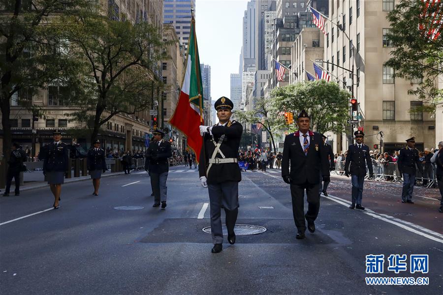 10月14日,在美國紐約曼哈頓第五大道,人們參加哥倫布日游行。當(dāng)天,紐約舉行哥倫布日游行,紀(jì)念意大利航海家克里斯托弗·哥倫布首次到達(dá)美洲大陸。哥倫布日游行也是美國最大的展示意大利文化傳統(tǒng)的慶?;顒印P氯A社記者李木子攝