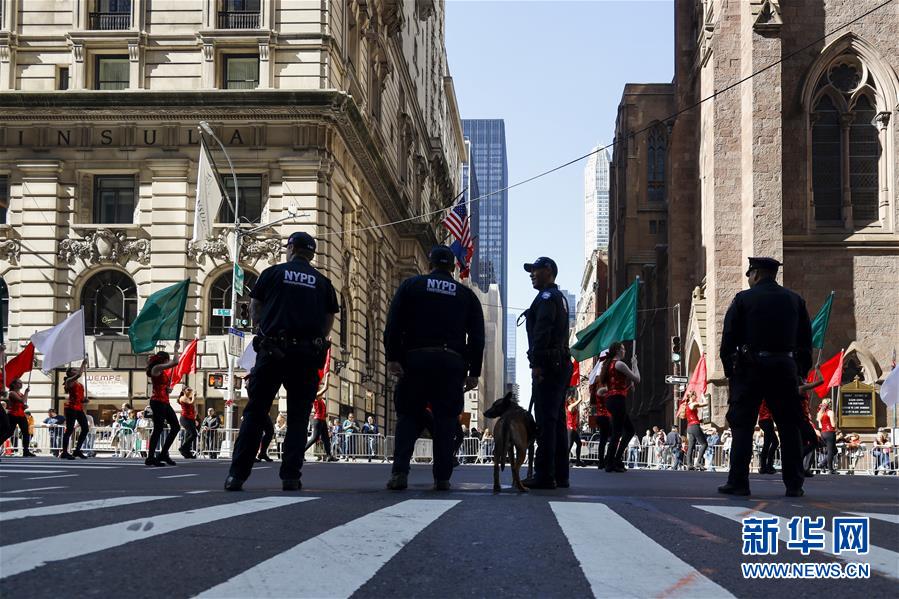 10月14日,在美國紐約曼哈頓第五大道,警察在哥倫布日游行上警戒。當(dāng)天,紐約舉行哥倫布日游行,紀(jì)念意大利航海家克里斯托弗·哥倫布首次到達(dá)美洲大陸。哥倫布日游行也是美國最大的展示意大利文化傳統(tǒng)的慶?;顒?dòng)。新華社記者李木子攝