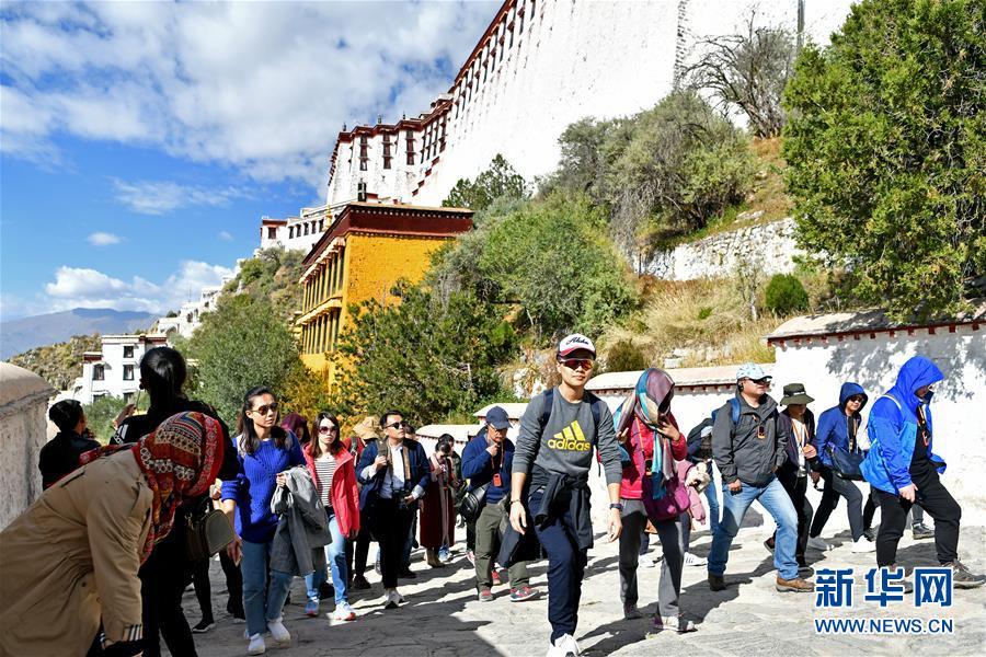 10月15日,游客在布達拉宮景區(qū)游覽。 根據(jù)西藏自治區(qū)《第三輪“冬游西藏”市場促進優(yōu)惠政策》,第三輪“冬游西藏”時段為2019年10月15日至2020年3月15日,共計5個月。除寺廟景區(qū)外,全區(qū)國有3A級(含3A級)以上景區(qū)免費游覽,國有3A級以下和非國有A級景區(qū)門票在淡季價格基礎(chǔ)上減半。 新華社記者 李鑫 攝
