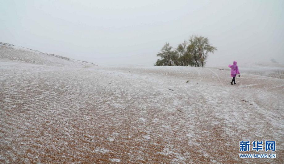 10月15日,游客在寧夏中衛(wèi)市沙坡頭景區(qū)欣賞沙漠雪景。深秋時(shí)節(jié),位于騰格里沙漠邊緣的寧夏中衛(wèi)市沙坡頭景區(qū)迎來(lái)一場(chǎng)降雪。漫漫黃沙被覆蓋在皚皚白雪之下,呈現(xiàn)出一種別樣的美。新華網(wǎng)杜文杰攝