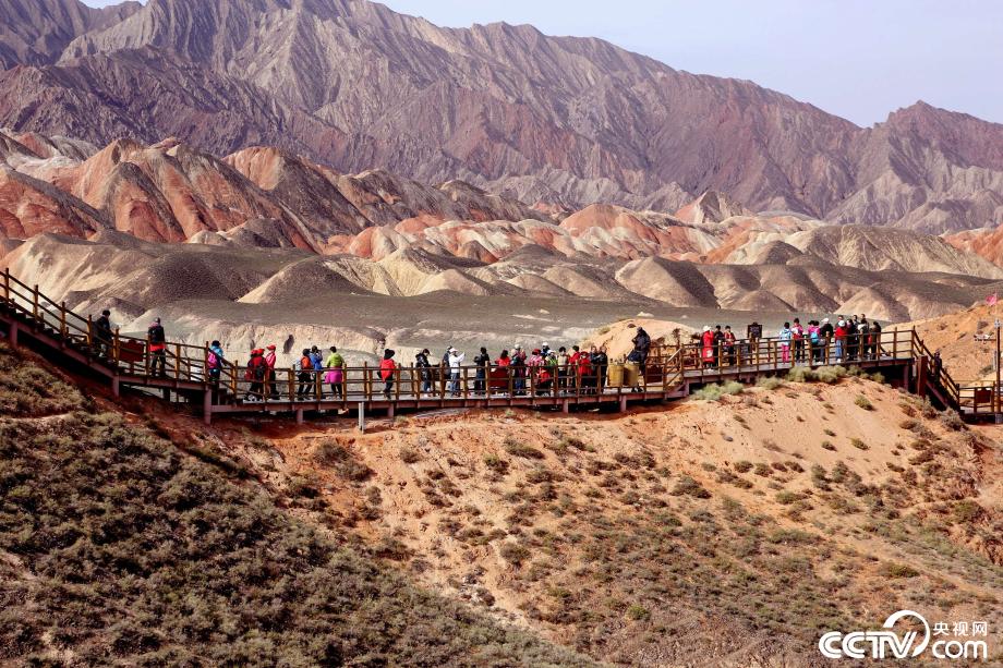 央視網(wǎng)消息:2019年10月15日,金秋時(shí)節(jié),位于甘肅省張掖市臨澤縣的七彩丹霞景區(qū)進(jìn)入旅游旺季,吸引眾多游人紛至沓來。張掖七彩丹霞景區(qū),分布面積約50公里,是中國(guó)北方干旱地區(qū)發(fā)育最典型的丹霞地貌。在方圓數(shù)十平方公里的范圍內(nèi),隨處可見有紅、黃、橙、綠、白等多種鮮艷的色塊或線條,把一座座山峰,一條條溝壑,裝點(diǎn)成一幅幅絢麗多姿、燦爛奪目的畫圖。圖片來源:視覺中國(guó)