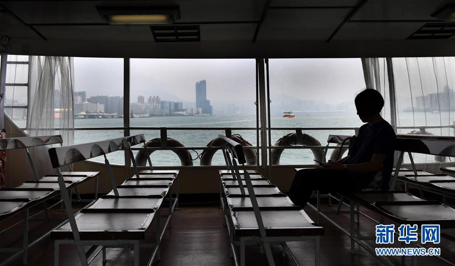 一位乘客乘坐天星小輪從灣仔碼頭前往尖沙咀(10月14日攝)。新華社記者盧漢欣攝