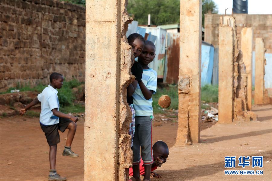 10月16日,在肯尼亞內羅畢基貝拉貧民窟,孩子們在放學后玩耍。新華社記者王騰攝