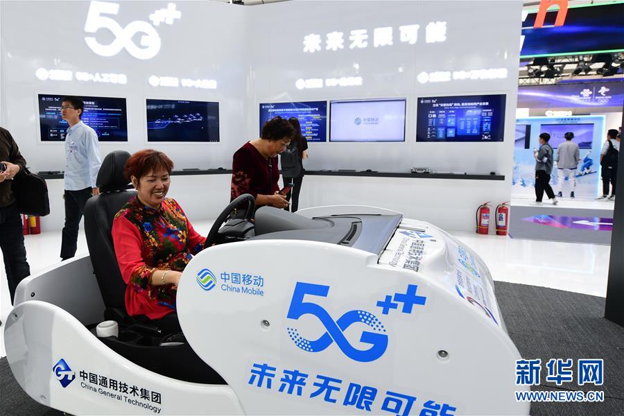 10月21日,一名參觀者在浙江烏鎮(zhèn)舉行的互聯(lián)網(wǎng)之光博覽會上體驗(yàn)基于5G技術(shù)的遠(yuǎn)程駕駛系統(tǒng)。新華社記者尹棟遜攝