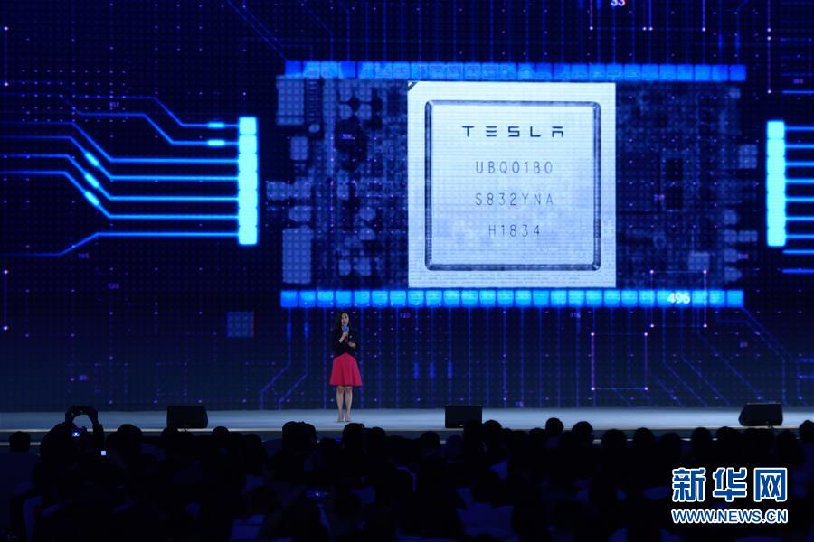 10月20日,特斯拉公司代表在介紹“特斯拉完全自動駕駛芯片”。新華社記者黃宗治攝