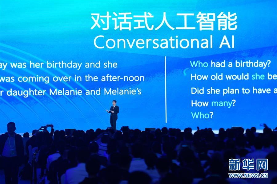 10月20日,微軟公司代表在介紹“統(tǒng)一自然語言預(yù)訓(xùn)練模型與機(jī)器閱讀理解”。新華社記者黃宗治攝