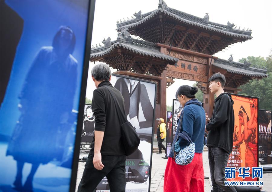 10月25日,觀眾經(jīng)過(guò)烏鎮(zhèn)廣場(chǎng)上的戲劇海報(bào)。新華社記者翁忻旸攝