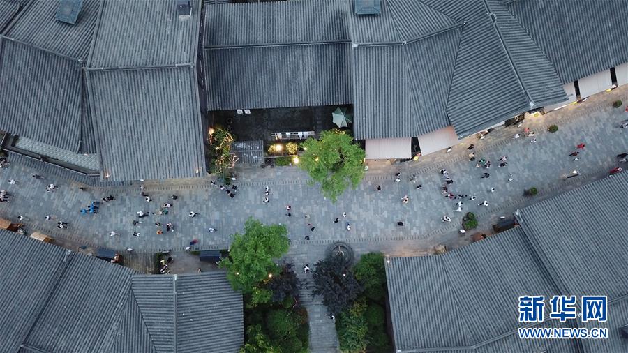 7月2日,游客在丹寨萬達小鎮(zhèn)游覽(無人機拍攝)。新華社記者歐東衢攝