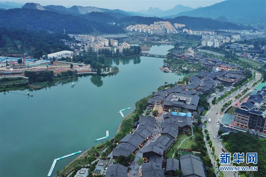 7月2日無人機(jī)拍攝的丹寨萬達(dá)小鎮(zhèn)。新華社記者歐東衢攝