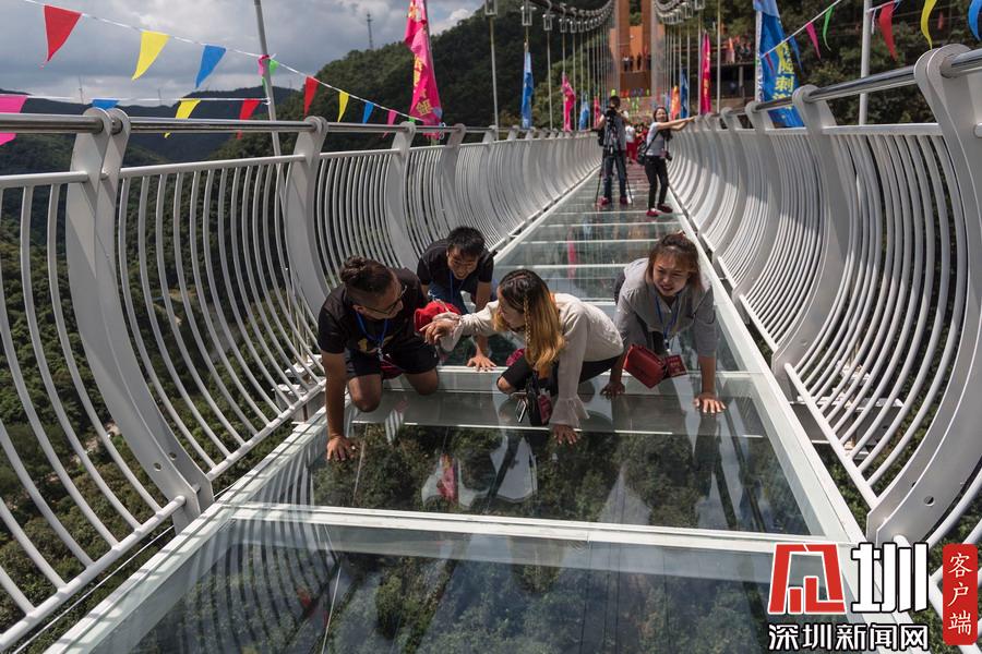2018年8月18日,昆明市安寧首座高空峽谷5D玻璃大橋在青龍峽景區(qū)內(nèi)正式試運(yùn)行,這也是云南省第一座高空峽谷玻璃大橋。該橋位于螳螂川河畔的青龍峽景區(qū),橋的垂直高度108米,總長跨度為188米。橋面采用聲光電技術(shù),有20多種特效場景。踩上去,伴隨著玻璃破碎的聲音,橋面也呈現(xiàn)玻璃破碎的畫面,整個(gè)營造出了5D的視覺感受,顛覆你對(duì)高空刺激的認(rèn)知。游客踏上高空玻璃橋表示很“害怕”。