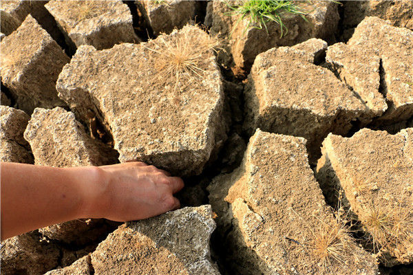 2019年10月4日,江西彭澤縣黃嶺鄉(xiāng)芳湖村,池塘干枯見底。圖為曾經水草豐盈的池塘已經缺水干枯。