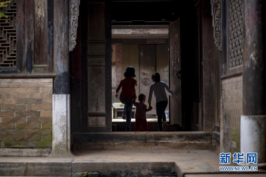 石屏縣異龍鎮(zhèn)符家營村的小朋友們在村里的老屋玩耍(8月8日攝)。新華社記者江文耀攝